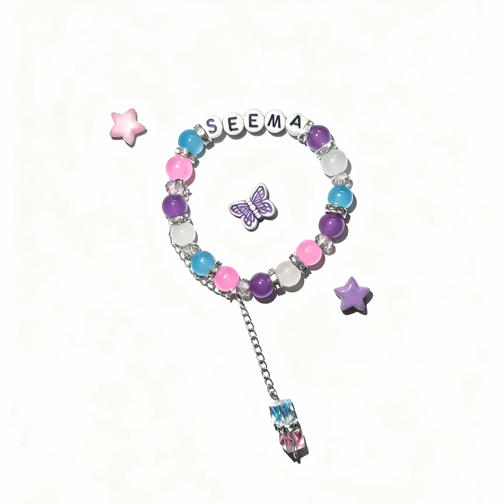 A Kaleidoscope of Color Tailored Just for You Our “Seema” Custom Rainbow Prism Bracelet is designed for those who love to shine bright. This special edition piece brings together a curated selection of vibrant blue, pink, and purple beads to create a playful “candy-colored” aesthetic that is both trendy and timeless.
